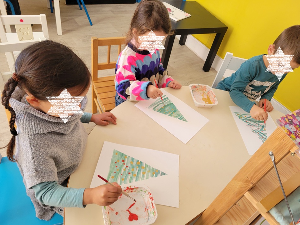 Les enfants découvrent et manipulent différents matériaux (peinture, encre, craies, collage, argile, papier, etc) et expérimentent des gestes, des outils et des techniques variées pour explorer les couleurs, les formes, les matières et les traces.