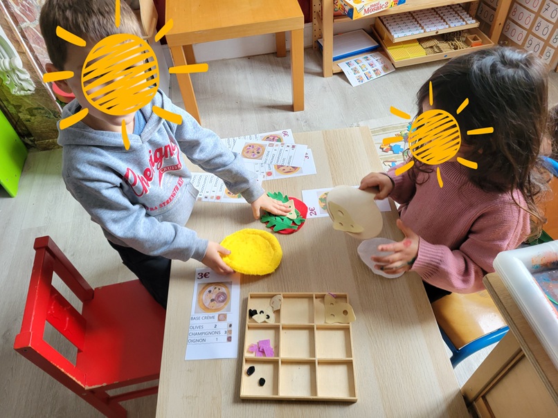 Dans la classe, l’apprentissage des mathématiques s’appuie sur une approche mixte, inspirée de plusieurs pédagogies reconnues, adaptées à l’âge des enfants, notamment la méthode Montessori et la méthode de Singapour.