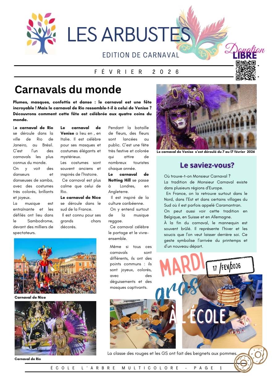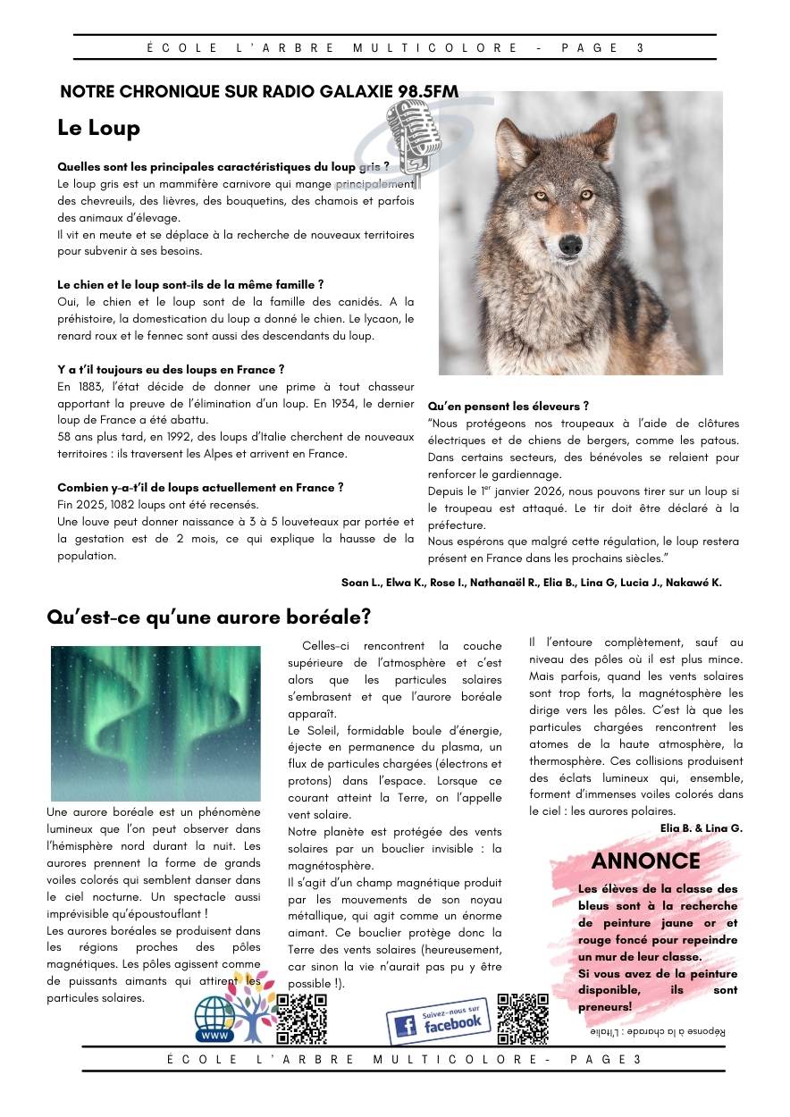 A chaque période, les enfants travaillent sur une édition du journal de l’école. Le choix de l’article est libre et cela permet de travailler la production d’écrits, ainsi que l’étude de la langue de façon motivante et vivante. Pour les plus jeunes, les articles sont dictés à l’adulte ou tapés à la machine à écrire.